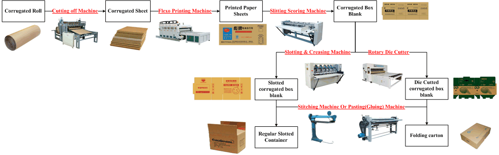 The cut boards are folded into box shapes and glued or stitched as per design requirements (regular slotted, die-cut, etc.).
